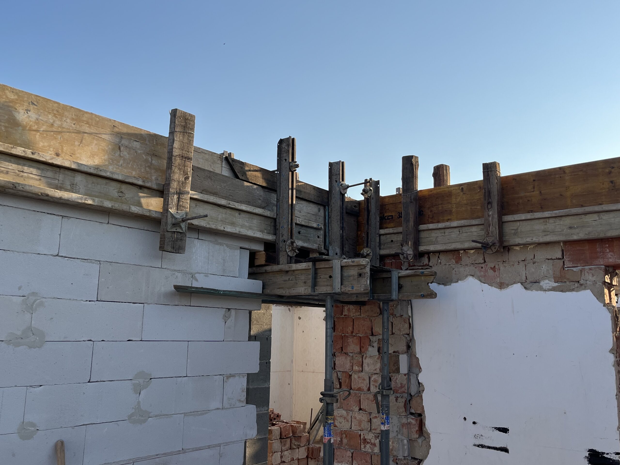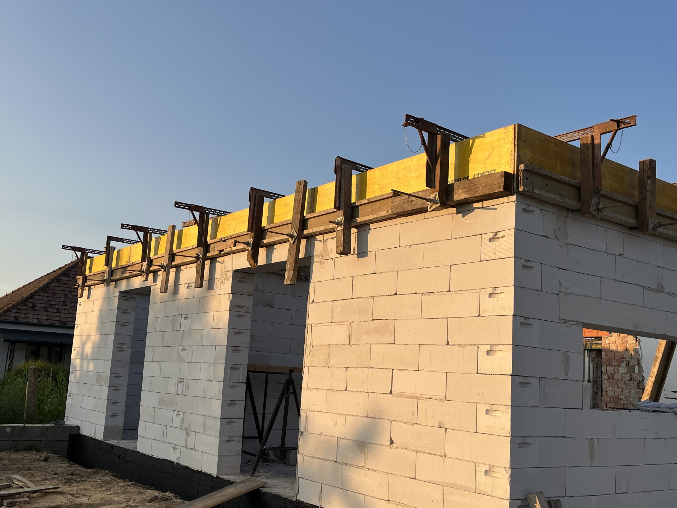 A vasbeton koszorú zsaluzása során kiemelt figyelmet fordítunk a pontos formára és az erős megtámasztásra, hogy a beton megfelelően szilárduljon és a szerkezet hosszú távon is stabil maradjon: